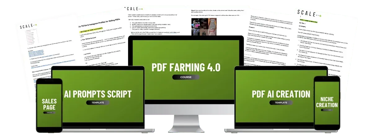 PDF Farming AI is a complete system that shows you how to create and scale PDF farms without showing your face. You'll learn exactly how I built 26+ profitable accounts, from choosing winning niches to creating 5-second viral videos. Everything is step-by-step, so you can copy my proven system.